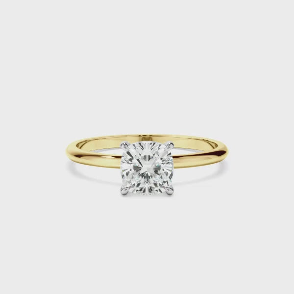 This timeless custom-made engagement ring, made with your choice of diamond centre stone, features a cushion cut diamond with 4-claw solitaire setting. Exuding fluidity in its line work, and boasting an elegant silhouette, as with all the pieces in our Bespoke Collection, this piece is made especially for you.