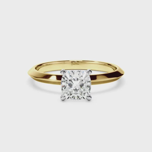 Cushion Cut Diamond Solitaire Knife Edge Engagement Ring