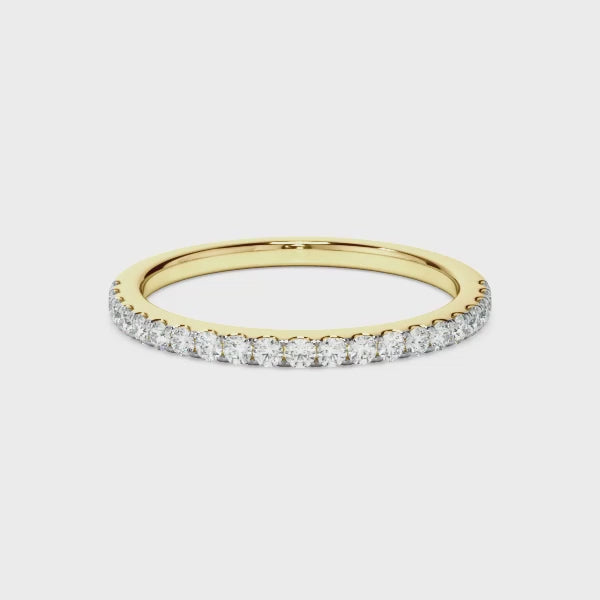 This stunning custom-made wedding ring features a half band of round brilliant cut diamonds set in an 18ct gold or platinum band. Exuding fluidity in its line work, and boasting an elegant silhouette, as with all the pieces in our Bespoke Collection, this piece is made especially for you.