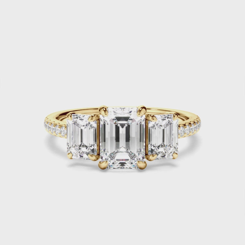 Emerald Cut Diamond Trilogy Engagement Ring with Pave Sides