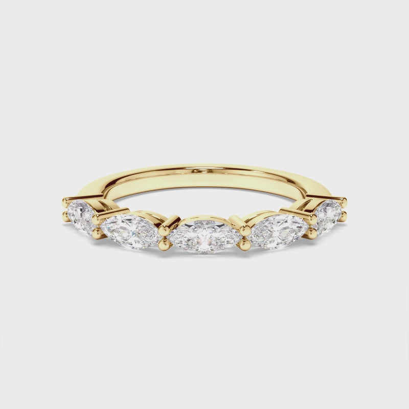 This stunning custom-made anniversary ring features five marquise cut diamonds set on an 18ct gold or platinum band. Exuding fluidity in its line work, and boasting an elegant silhouette, as with all the pieces in our Bespoke Collection, this piece is made especially for you.