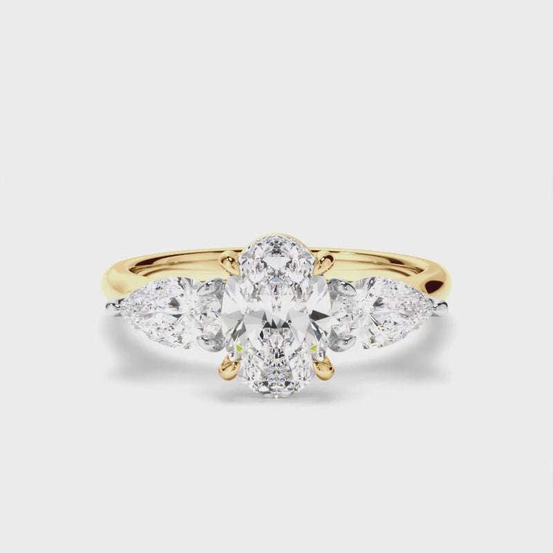 Oval Cut Diamond Trilogy Engagement Ring with Pear Sides
