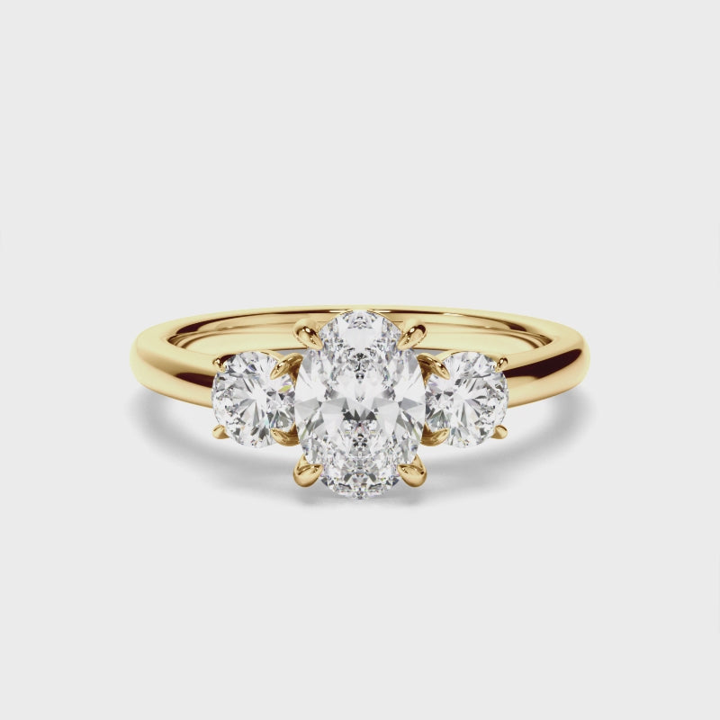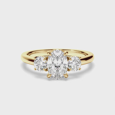 Oval Cut Diamond Trilogy Engagement Ring with Round Brilliant Sides