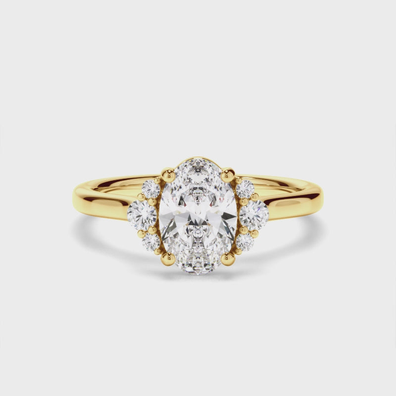 Oval Cut Diamond Engagement Ring with Diamond Cluster Sides