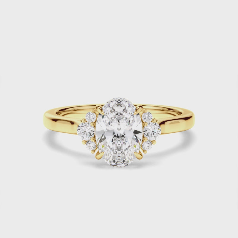 Oval Cut Diamond Engagement Ring with Diamond Cluster Sides