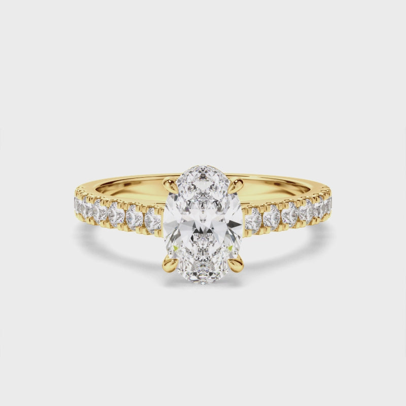 Oval Cut Diamond Engagement Ring with Diamond Sides