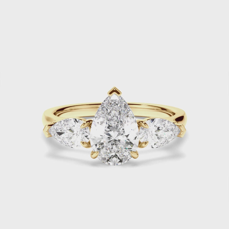 Pear Cut Diamond Trilogy Engagement Ring with Pear Sides