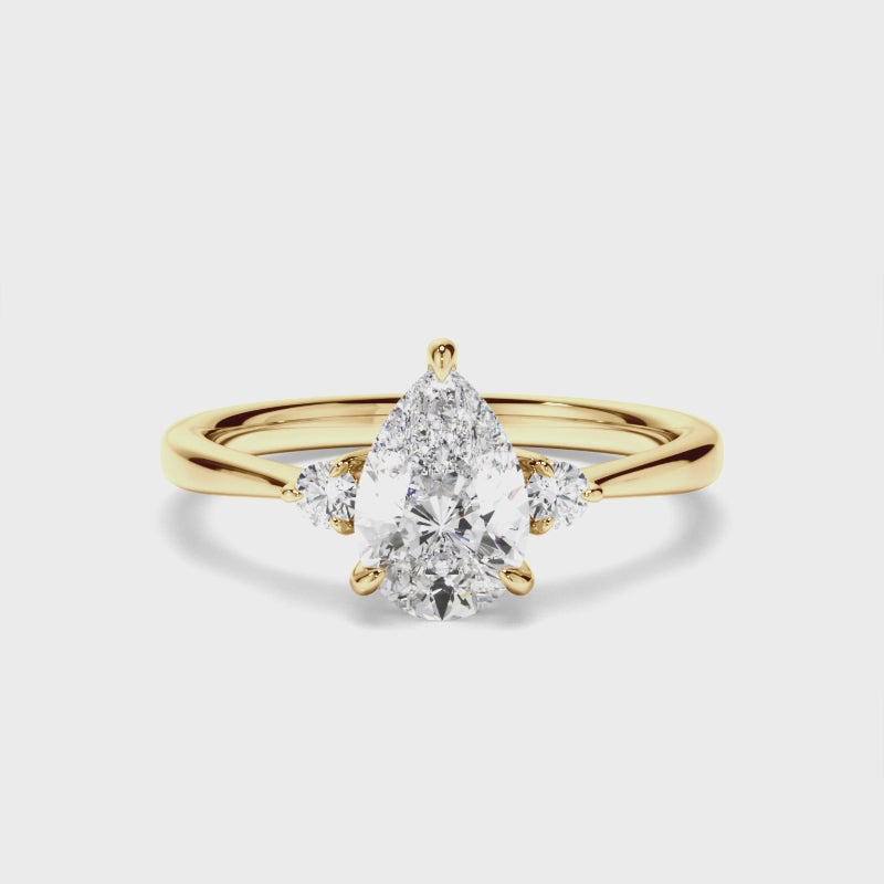 Pear Cut Diamond Trilogy Engagement Ring with Round Brilliant Sides