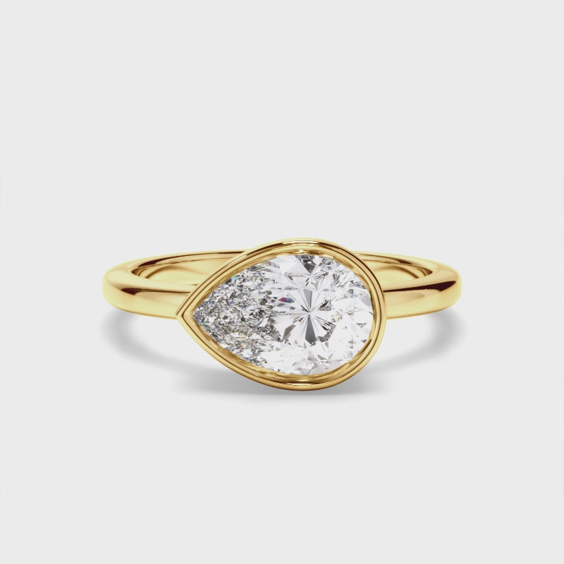 Pear Cut Diamond Bezel East West Solitaire Engagement Ring