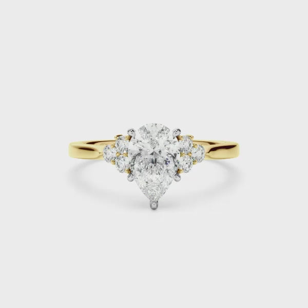 Pear Cut Diamond Engagement Ring With Diamond Cluster Sides