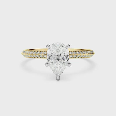 Pear Cut Diamond Knife Edge Engagement Ring With Diamond Pave Sides