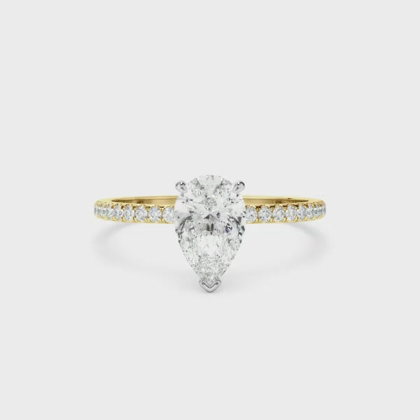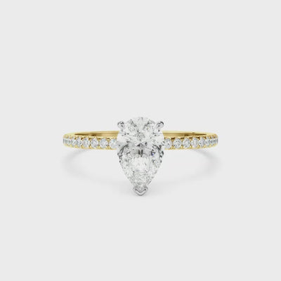 Pear Cut Diamond Solitaire Engagement Ring With Pave Band