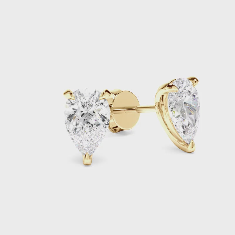 These stunning pear cut diamond stud earrings, made with your choice of diamond centre stone, and butterfly post. Exuding fluidity in its line work, and boasting an elegant silhouette, as with all the pieces in our Bespoke Collection, this piece is made especially for you. Pictured here with a 1.00ct Pear Cut Diamond for each ear, the final price is determined following your centre stone selection.