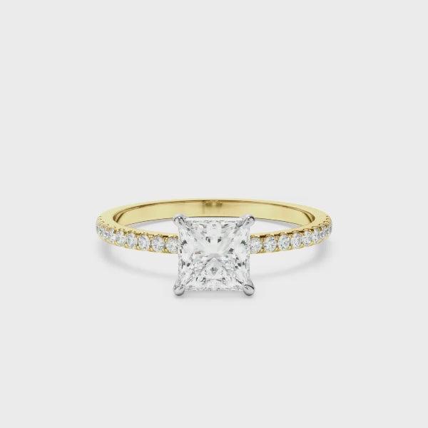 Princess Cut Diamond Solitaire Engagement Ring With Pave Band