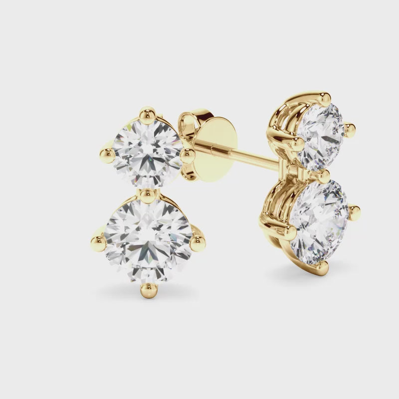 This stunning pair of round brilliant cut diamond stud earrings feature a 1.00ct Round Brilliant Cut Diamond and a 0.50ct Round Brilliant Cut Diamond set together for each ear. Exuding fluidity in its line work, and boasting an elegant silhouette, as with all the pieces in our Bespoke Collection, this piece is made especially for you.
